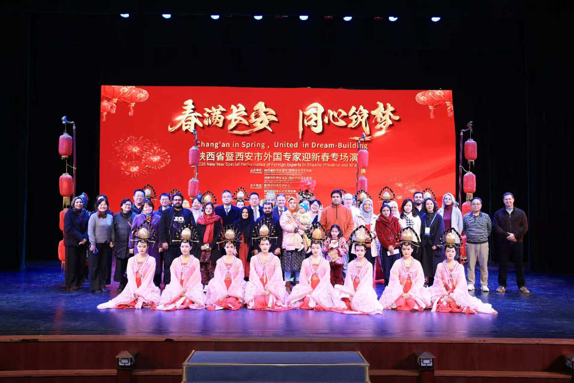 1月16日,由省科技厅(省外国专家局)和西安市科技局(西安市外国专家局)联合举办的“陕西省暨西安市外国专家迎新春专场演出”在陕西歌舞大剧院举办。陕西省歌舞剧院有限公司的艺术家倾情演绎了传统艺术表演《唐乐舞》。在陕工作的外国专家代表及家属等近300人观看演出。省委科技工委委员、省科技厅(省外国专家局)副厅长白崇军、西安市科技局(西安市外国专家局)党组书记、局长陈默致辞,西安市科技局(西安市外国专家局)党组成员、副局长楼文晓主持。