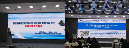 在路演环节,来自陕西航空职业技术学院的智能扭矩检测管理系统,来自陕西理工大学的航空陀螺仪关键部件智能制造技术及装备研究、零件酸碱超声智能清洗产线研制及产业化、智能水润滑轴承关键技术及产业化应用和3D 视觉测量技术及系列AOI设备等5个项目分别进行了路演。