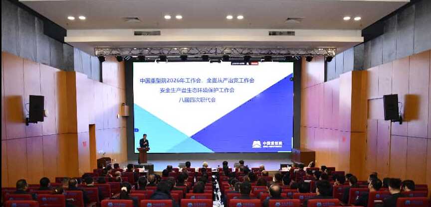 (通讯员 上官书仪)1月27日上午,中国重型院召开2026年工作会、全面从严治党工作会、安全生产暨生态环境保护工作会、八届四次职代会,全面总结2025年及“十四五”期间主要工作,精心部署2026年及“十五五”期间重点任务。国机重装第二监督办公室主任、公司外部董事以视频形式参加会议,中国工程院院士、公司常务副总工程师关杰,公司领导王社昌、潘吉财、叶志刚、魏炜、何博参加会议,总经理、党委副书记丘铭军主持会议。