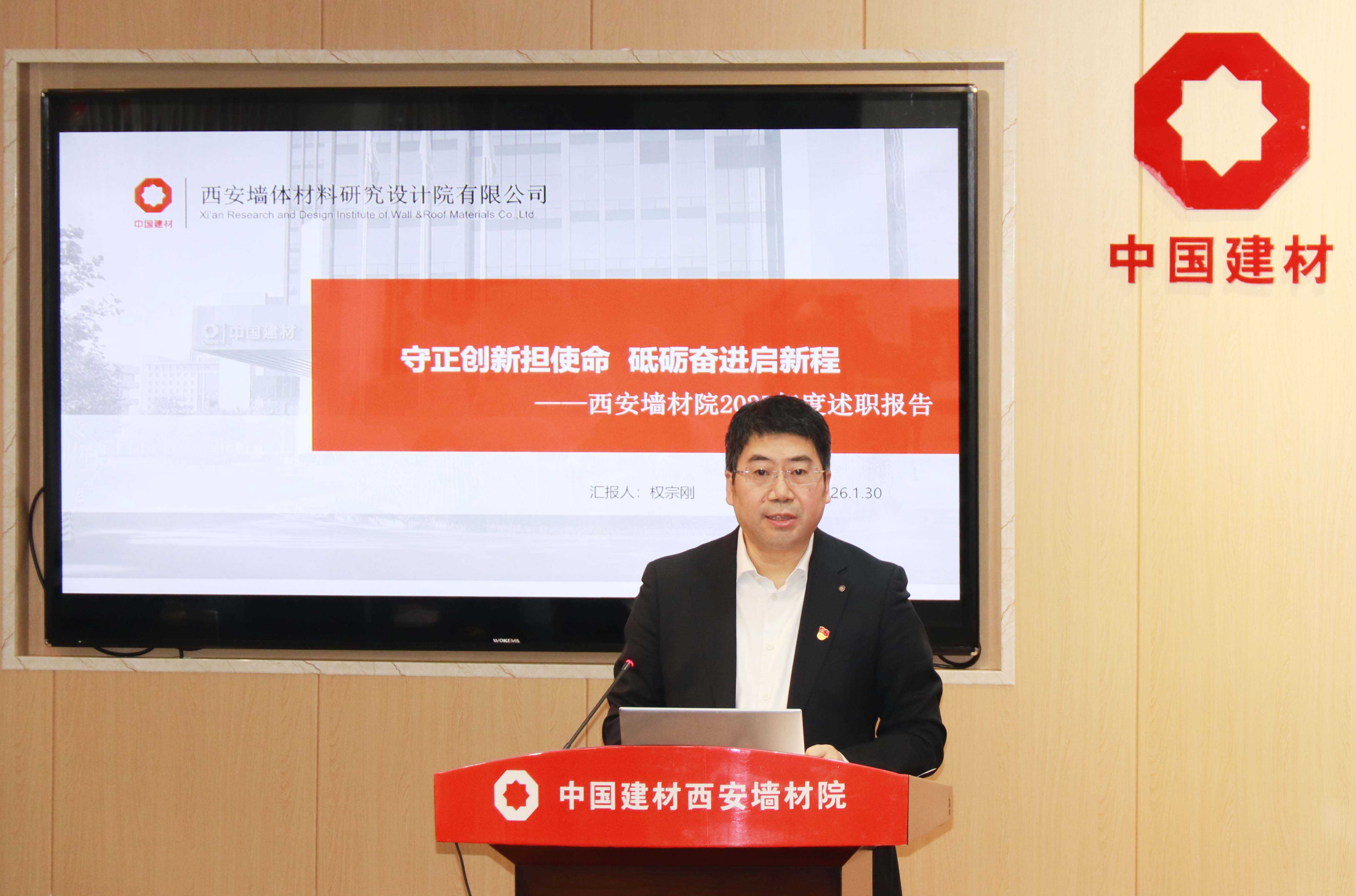 近日,西安墙材院召开2026年工作会议。中国建材集团总经理助理、中国建材总院党委书记、董事长郅晓,党委委员、副总经理贾金升、党委组织部/人力资源部部长郭晓娟、科技部部长李桂金出席会议。西安墙材院党委书记、总经理权宗刚作了题为《守正创新担使命,砥砺奋进启新程》的工作报告。会议由西安墙材院副总经理杨璞主持。