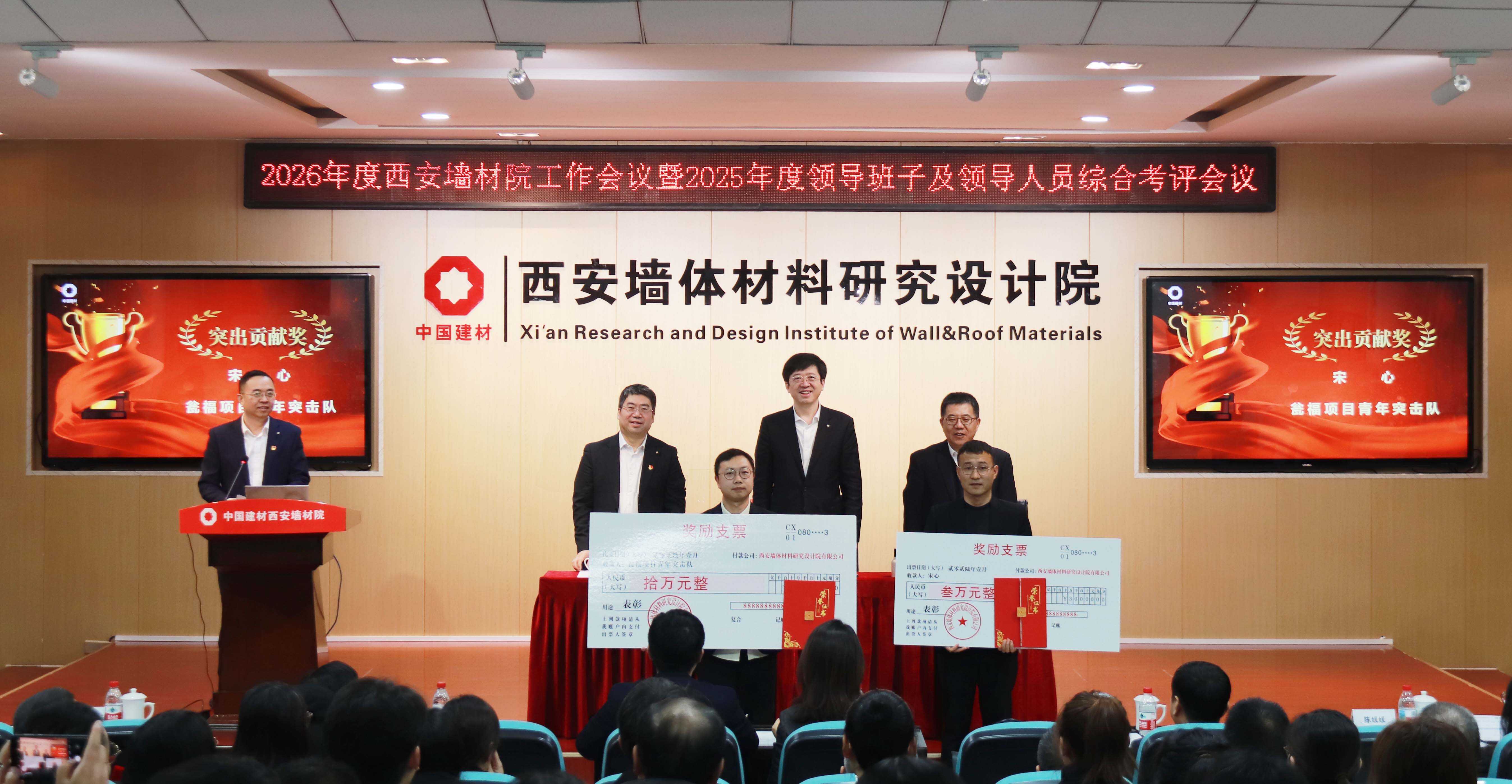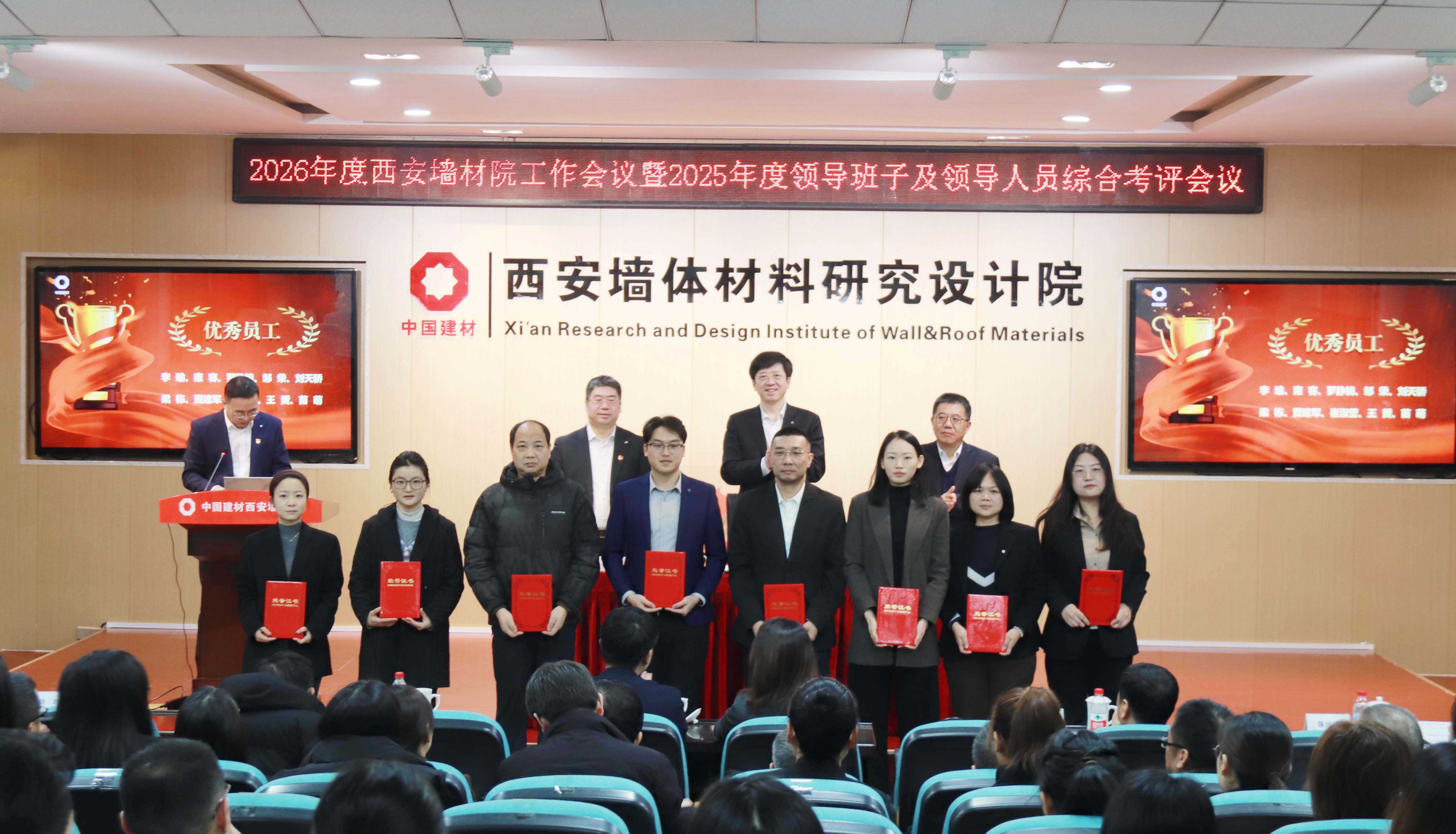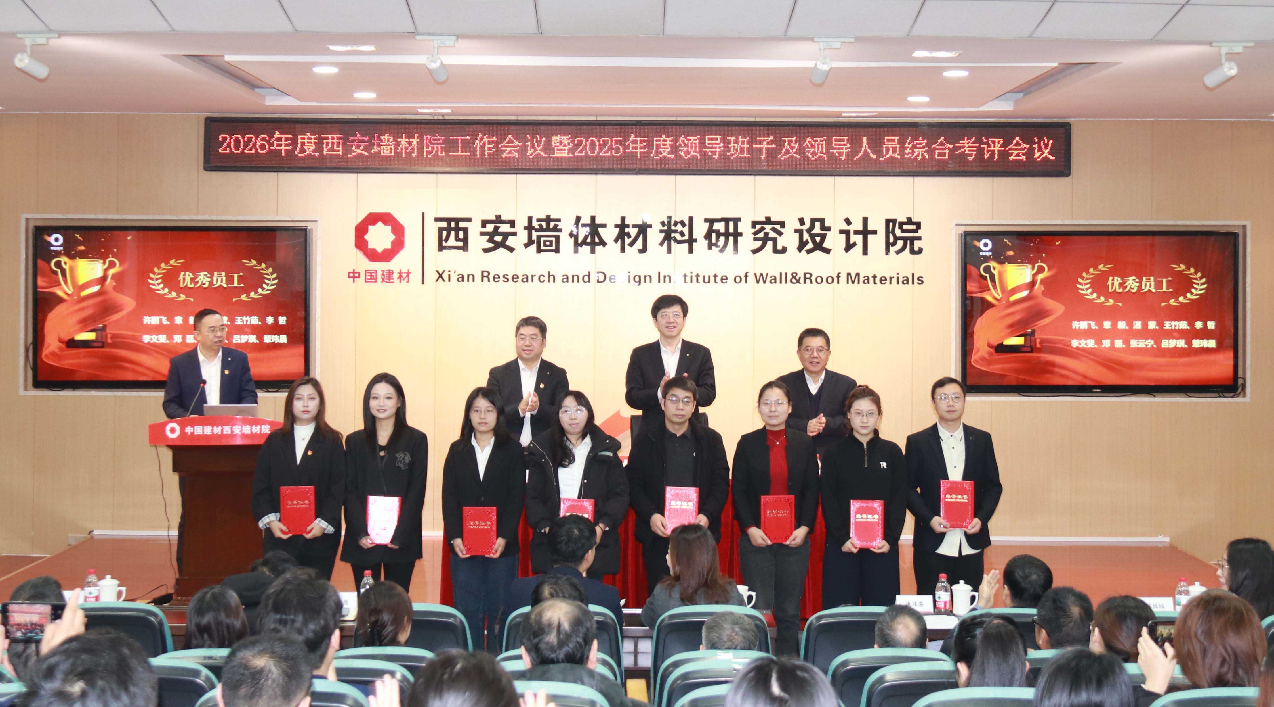 会议对西安墙材院2025年度优秀员工、优秀管理者、优秀团队、西安院突出贡献奖获得者进行了表彰奖励。