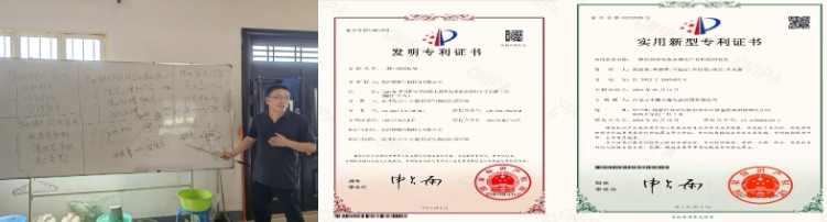 宣世荣在讲解厚地技术原理,获得的部分专利证书。图片均由张行勇提供