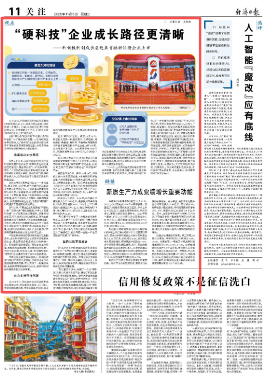 10月28日,科创板迎来科创成长层首批3家新注册企业上市,资本市场包容度、适应性进一步提升。目前,科创板已汇聚592家科技企业,总市值超9万亿元,已成为中国“硬科技”企业上市“首选地”。