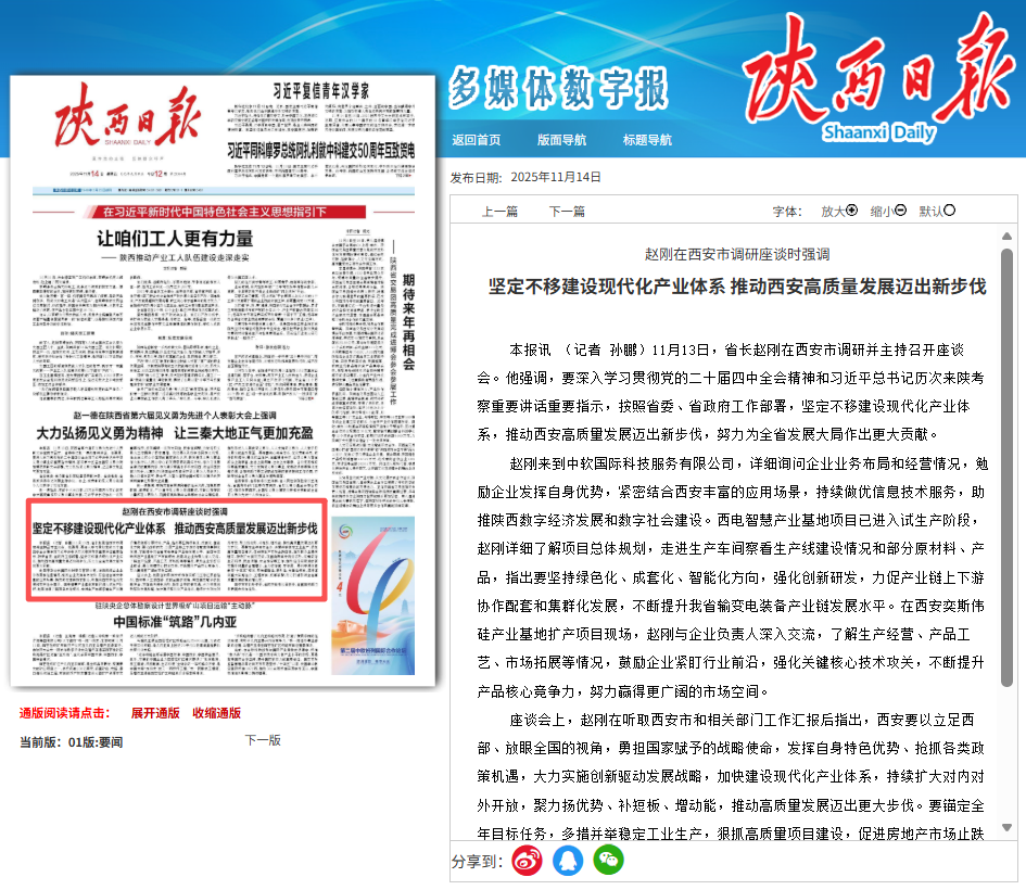 11月13日,省长赵刚在西安市调研并主持召开座谈会。他强调,要深入学习贯彻党的二十届四中全会精神和习近平总书记历次来陕考察重要讲话重要指示,按照省委、省政府工作部署,坚定不移建设现代化产业体系,推动西安高质量发展迈出新步伐,努力为全省发展大局作出更大贡献。
