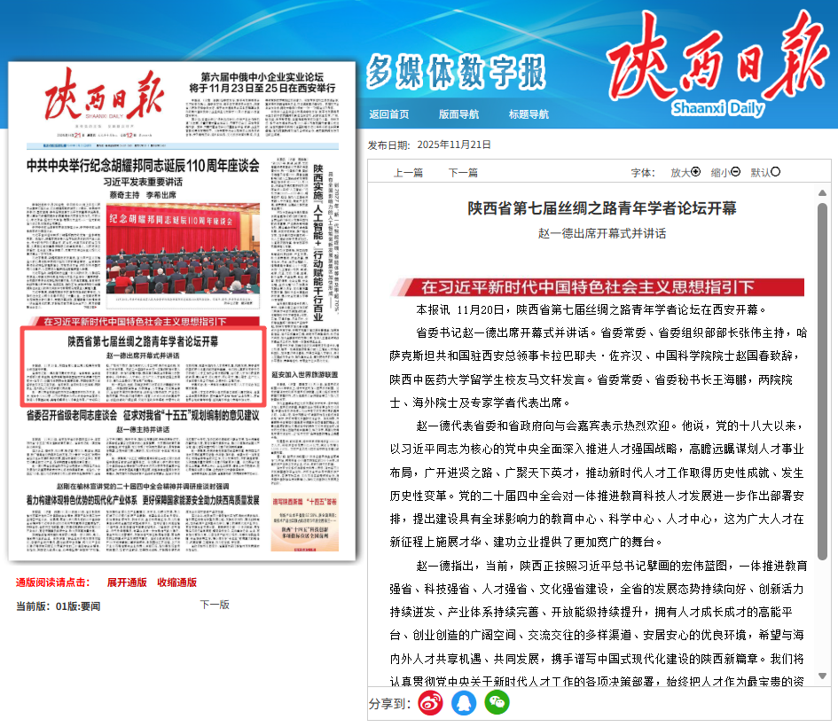 本报讯 11月20日,陕西省第七届丝绸之路青年学者论坛在西安开幕。