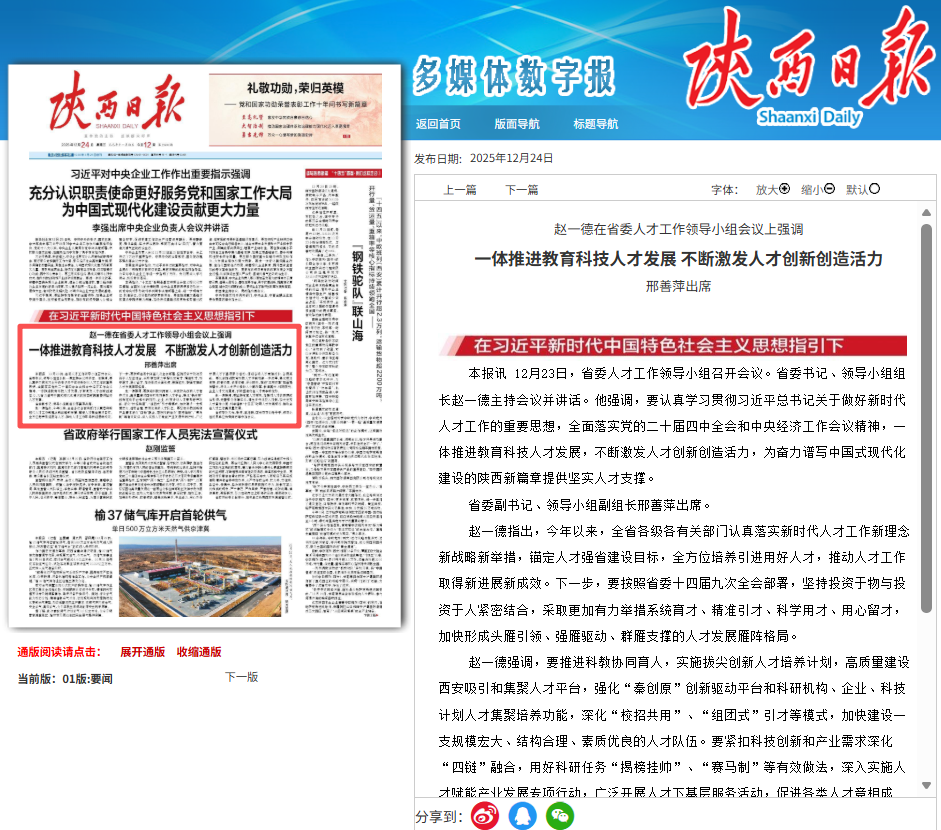 2025年12月24日《陕西日报》第01版