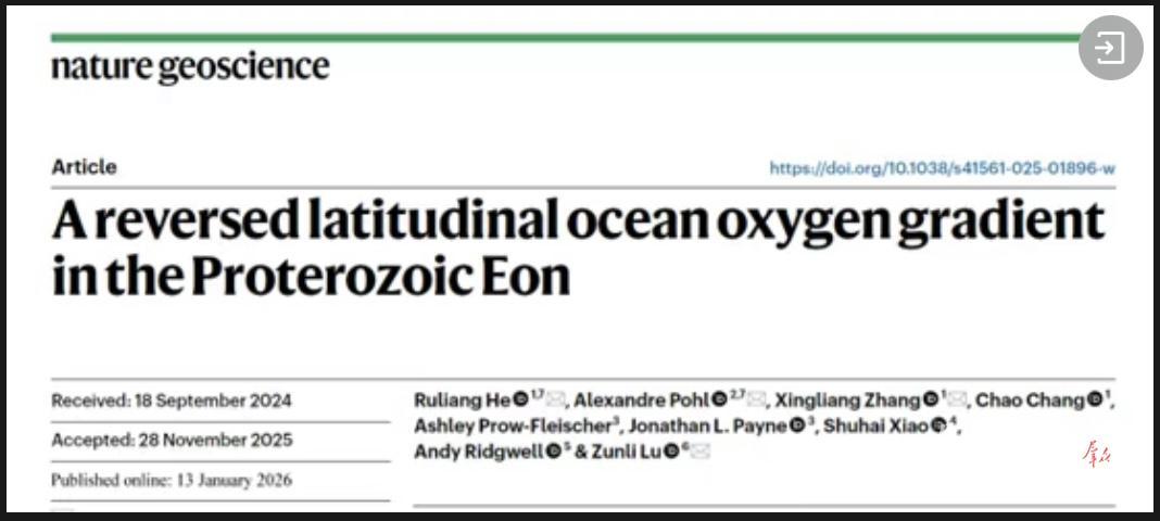 1月17日,记者从西北大学获悉:学校早期生命与环境研究团队发现了20亿年以来海洋氧化模型的转化过程。