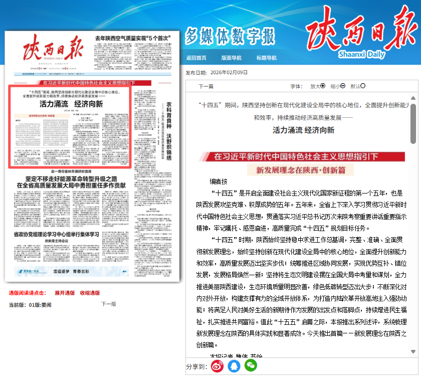 2026年2月9日《陕西日报》第01版