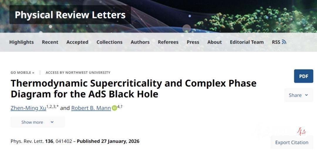 本研究通过引入复解析延拓与李—杨相变理论,首次成功构建出包含超临界细节的完整相图,使得深入解析黑洞超临界热力学行为成为可能。西北大学理论物理团队副教授许震明表示,此次研究不仅为量子引力与热力学的交叉研究提供了新方法,也为探索黑洞微观结构与量子效应开辟了新视角,同时为未来在引力波观测与量子模拟实验中探测黑洞相变提供了理论基础和潜在的检验路径。