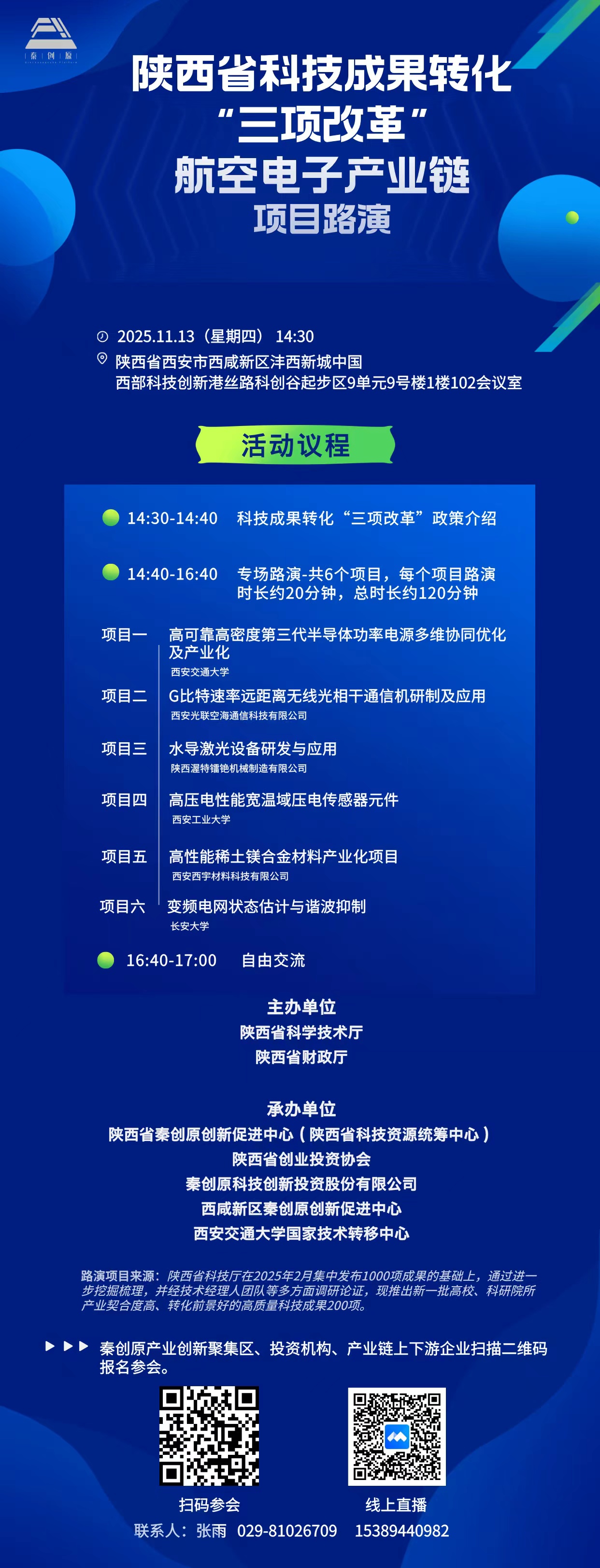 陕西省科技成果转化“三项改革”系列路演丨(61)航空电子专场