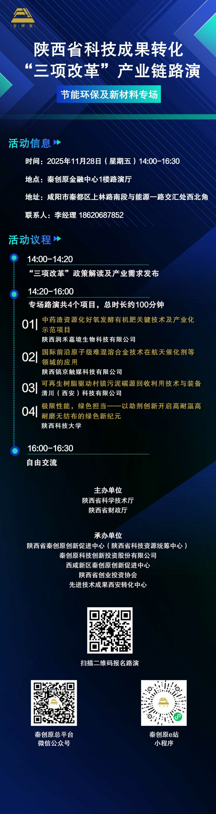 陕西省科技成果转化“三项改革”系列路演丨(68)节能环保及新材料专场
